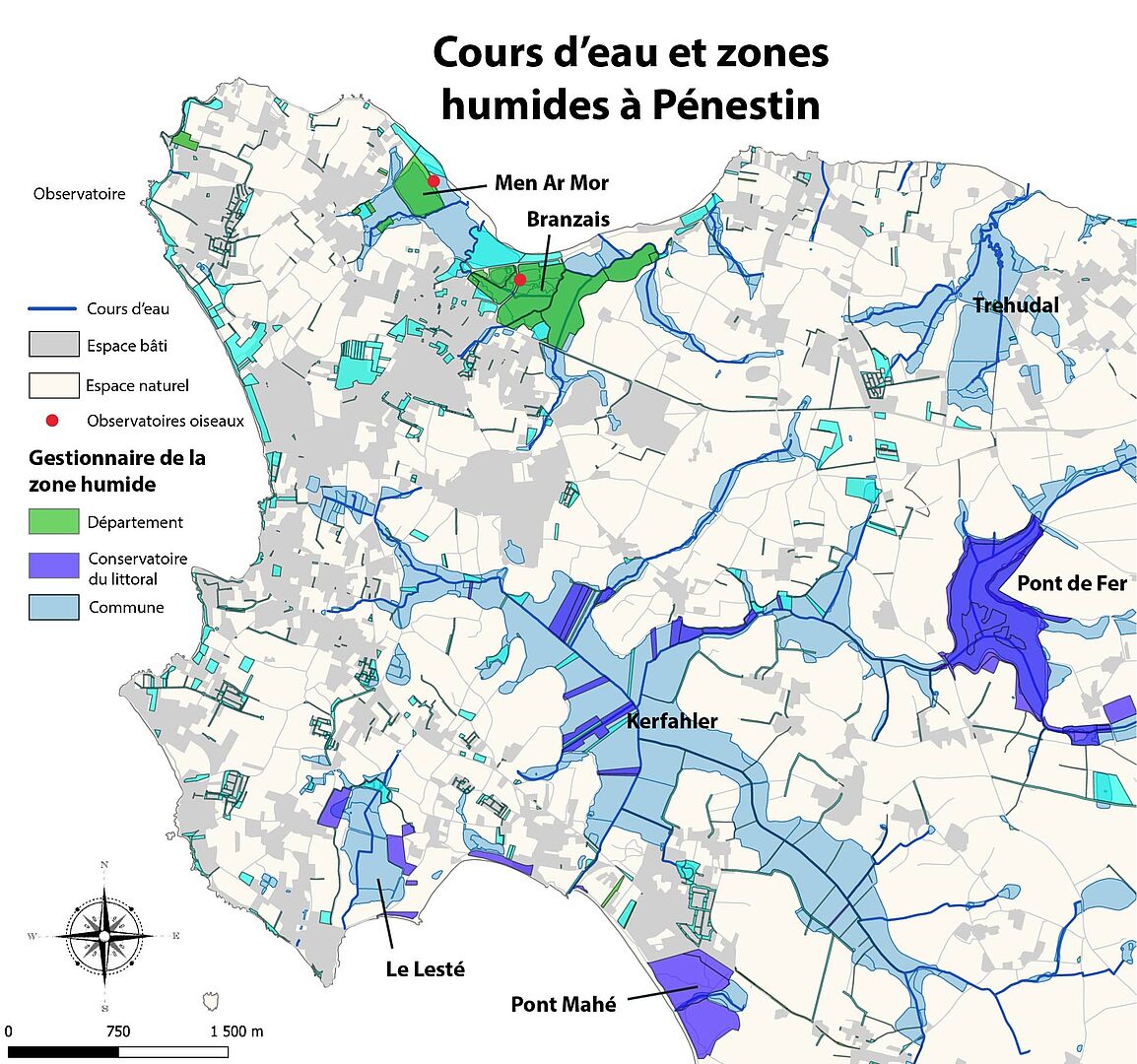 Au sud de la commune, les marais du Lesté, de Kerfahler et de Pont Mahé constituent une zone humide remarquable par la continuité de ses habitats et la grande amplitude de son régime hydrologique.
